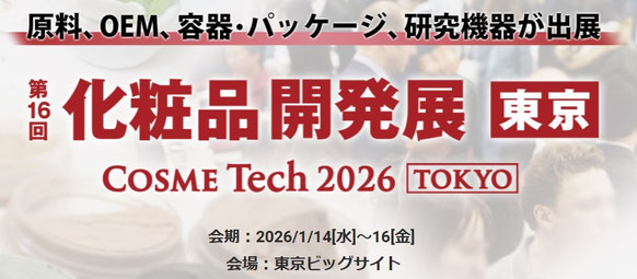 2026年1月14日(水)~16日(金)、東京ビッグサイトにて開催されます「第16回 化粧品開発展 東京」に出展いたします!
